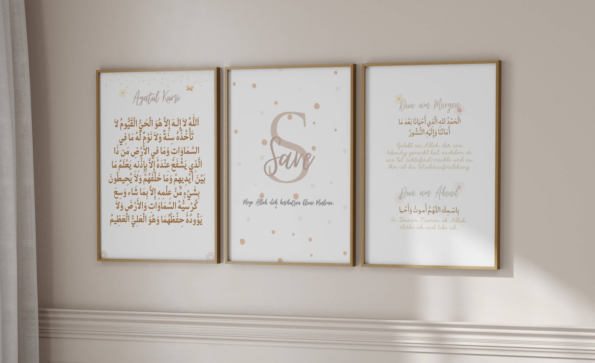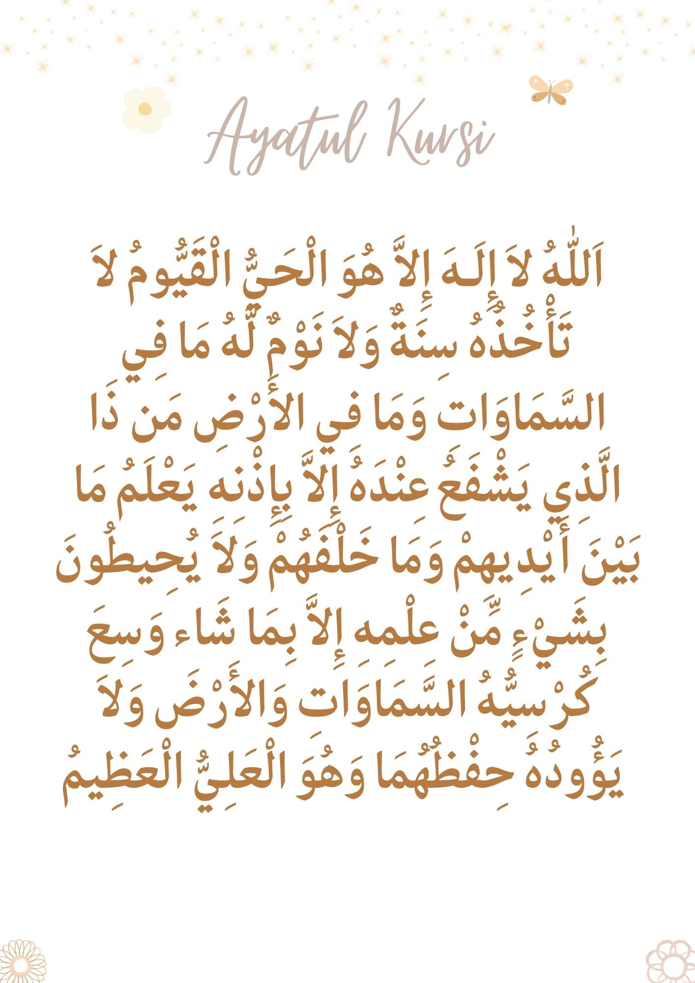 Der Thronvers des Koran Ayat Al Kursi ist eines der wichtigsten Suren im Islam und darf im Zimmer Deiner Liebsten nicht fehlen. Dieses süße Set mit Dua vor dem Schlafengehen und Dua nach dem Aufstehen wird das Zimmer von Deiner Tochter perfekt ergänzen und ist ein Eye-Catcher zugleich.