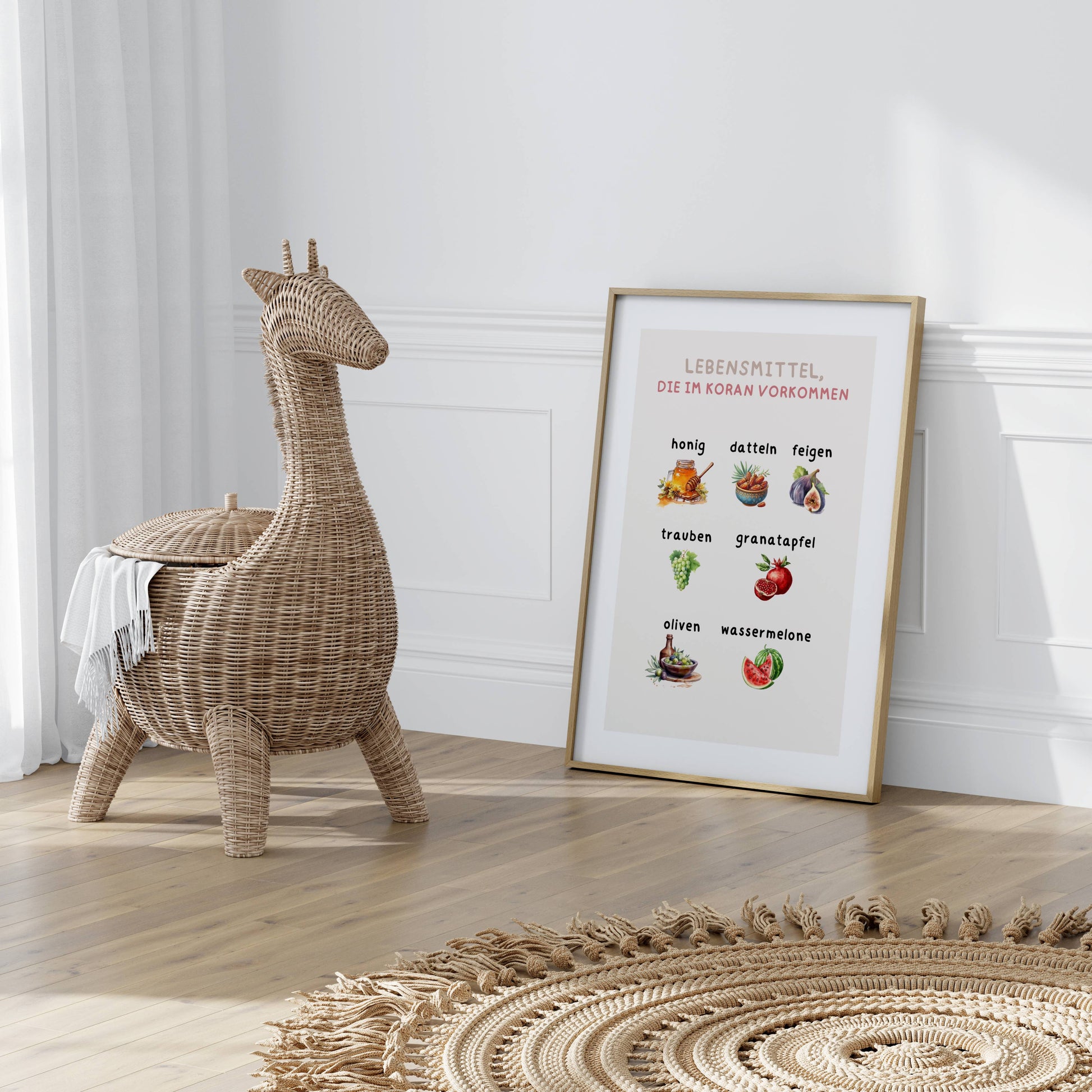 Ein zeitloses Poster mit den Lebensmitteln, die im Koran vorkommen für kleine Herzensmenschen. Mit diesem lehrreichen Poster ist das Kinderzimmer perfekt dekoriert.