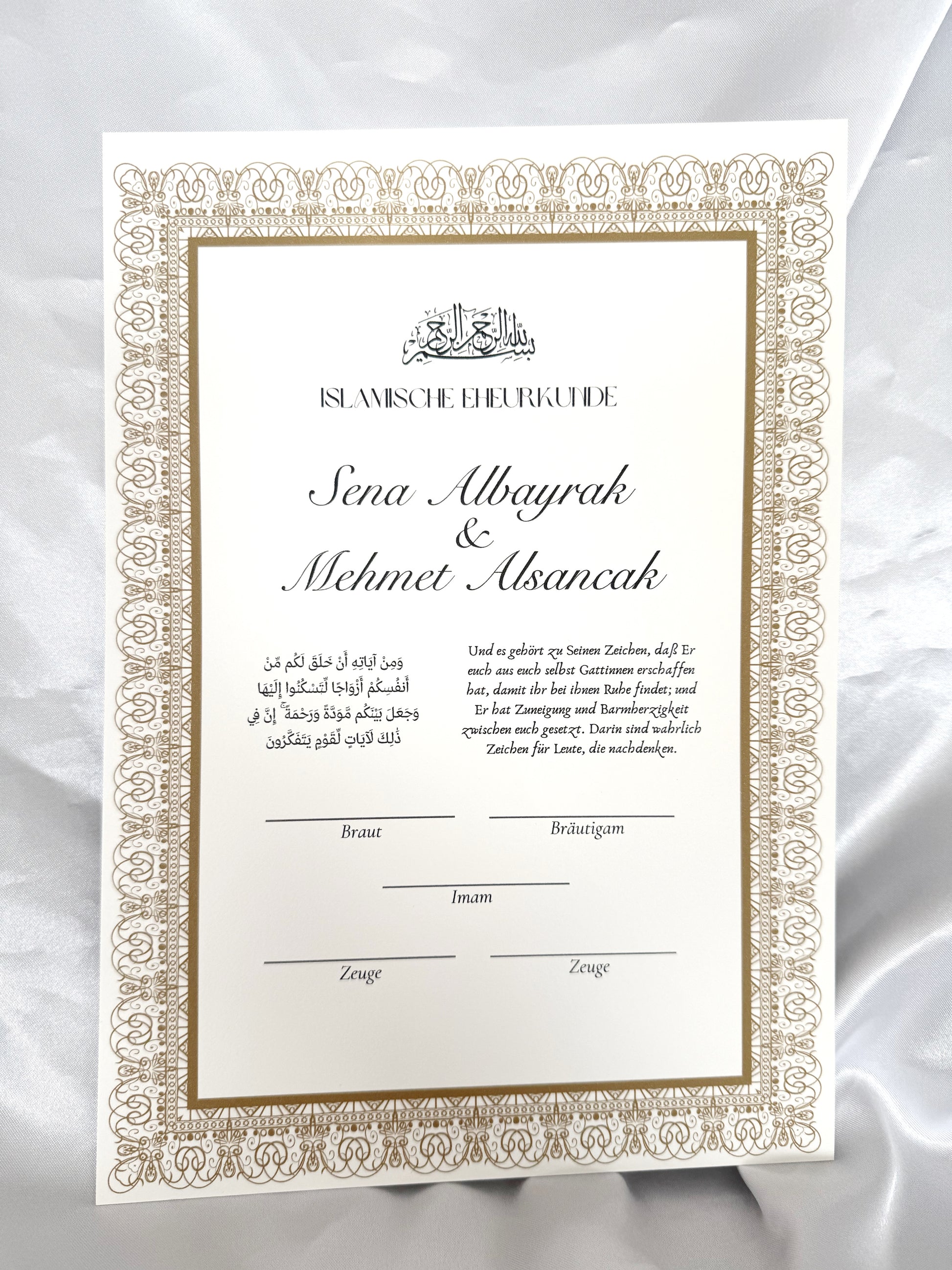 Nikah Zertifikat mit goldenem Rahmen